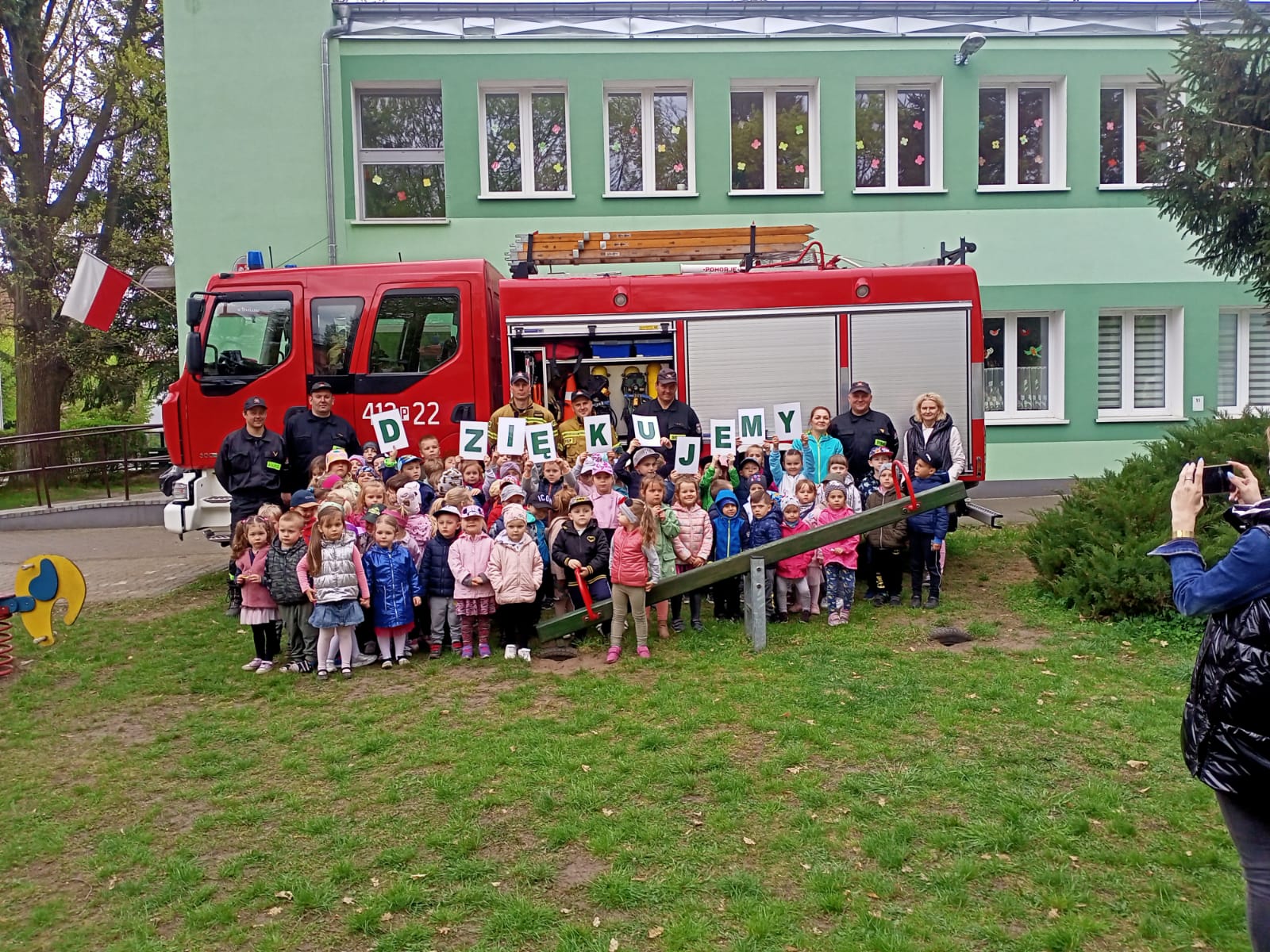 Dnia 05 maja w naszym przedszkolu odwiedzili nas Strażacy z Państwowej Straży Pożarnej w Trzciance. Dzieci dowiedziały się jak wygląda praca strażaka, jaki używają sprzęt. Najważniejszą radość sprawiło przedszkolakom lanie wody z węża strażackieg 🚒.