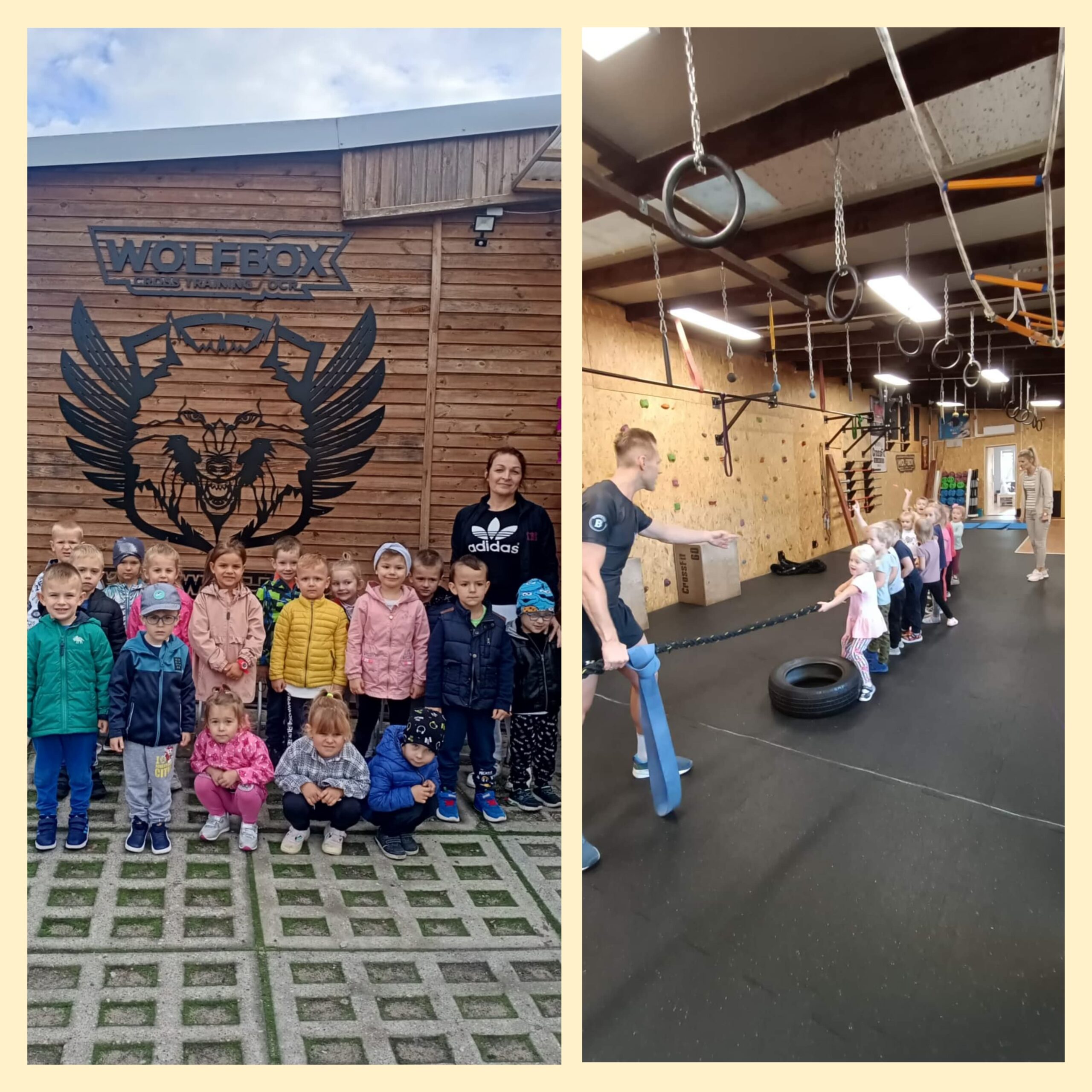 Głównym kierunkiem pracy przedszkola w roku szkolnym 2022/2023 jest ruch, „Ruch jest drzwiami do uczenia się” P.E. Denison. W związku z tym poszczególne grupy podjęły współpracę z Studiem Treningowym WOLFBOX w Trzciance. W dniu 12 września grupa „Biedronki” i „Żabki” uczestniczyły w zajęciach sportowych, których celem, było rozwijanie sprawności ruchowej dzieci oraz nabywanie ogólnej sprawności i zwinności.