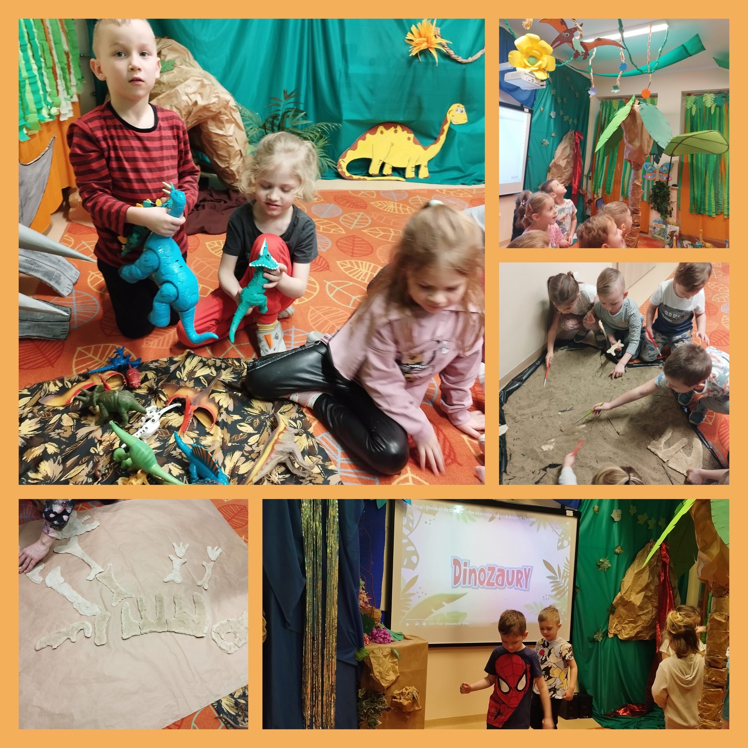 Przedszkolaki odwiedziły salę dinozaurów. Dowiedziały się ciekawostek na ich temat, bawiły się w paleontologów. Dzieci były zachwycone „pradawnym światem”.🦕🦖