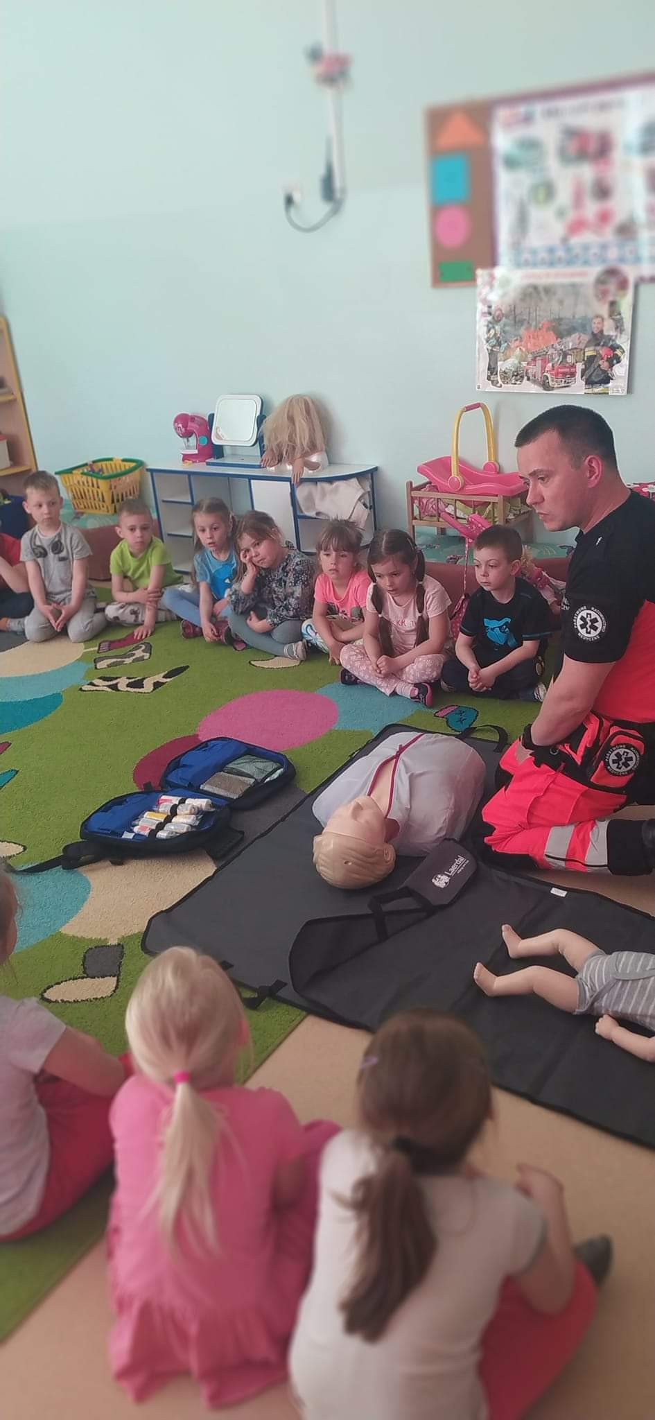 Grupę Biedronki i Żabki odwiedził tata Ignasia , który jest na co dzień ratownikiem medycznym. Pan Dezyderiusz omówił na czym polega praca ratownika medycznego oraz zaprezentował na fantomie, pierwszą pomoc medyczną. Dzieci z zaciekawieniem słuchały gościa, również same próbowały uciskać fantom, co okazało się nie łatwym zadaniem. Natomiast Ignacy zaprezentował kolegom i koleżankom swoją apteczkę pierwszej pomocy.