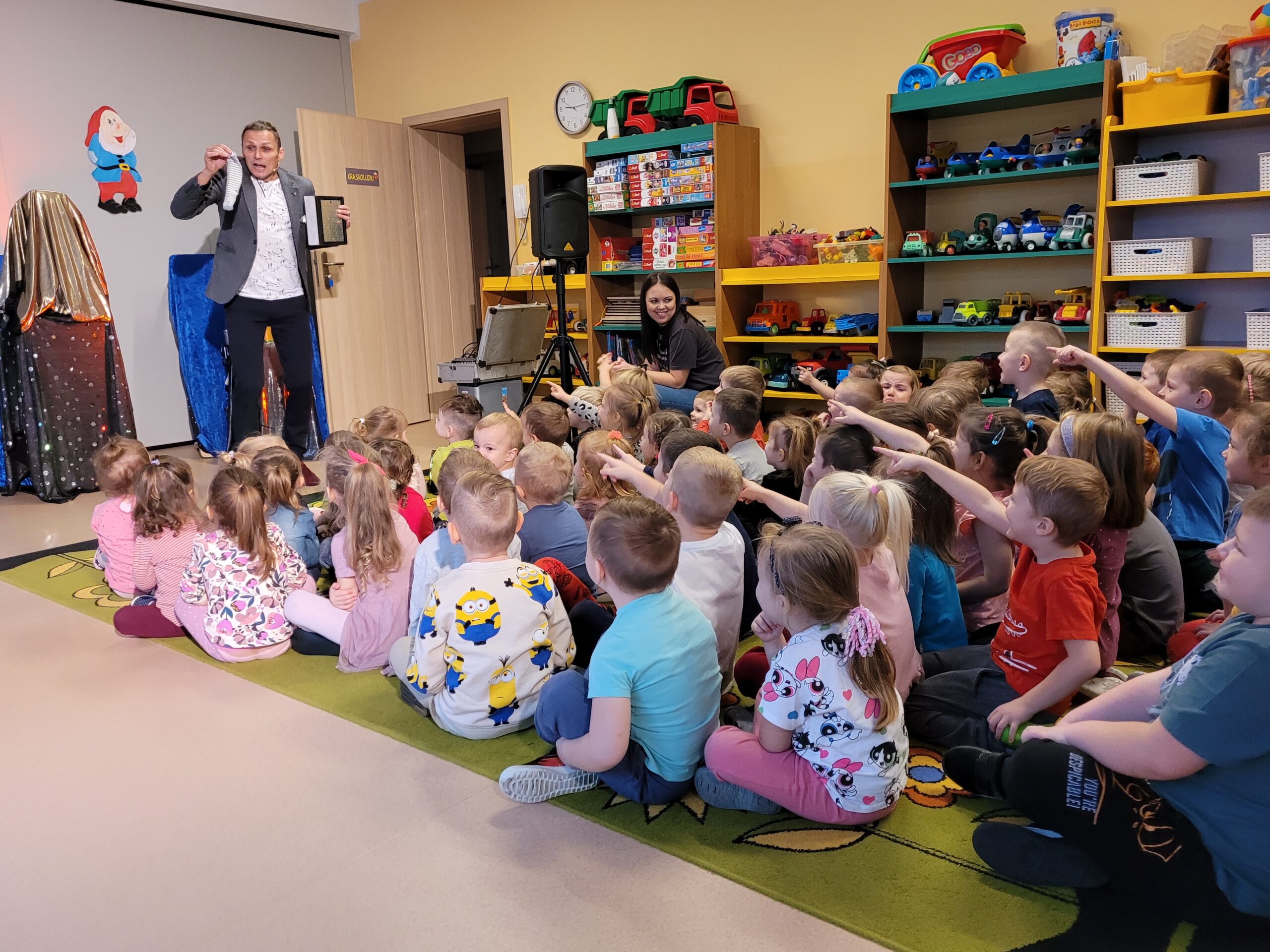 Dzisiaj zawitał do naszego przedszkola pan Piotr Szumny, iluzjonista z 20-letnim stażem. Program rozrywkowy „W magicznym świecie iluzji” przypomniał dzieciom o konieczności mycia ząbków i wizyt u stomatologa.